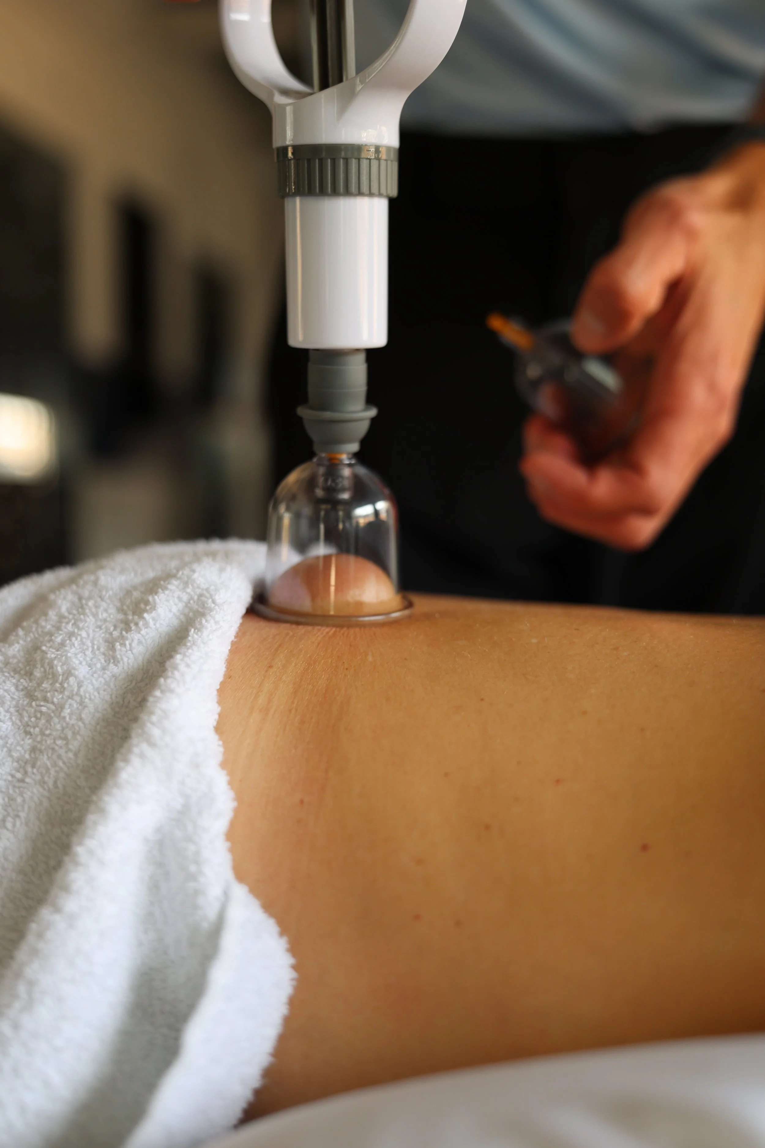Creates negative pressure to lift tissues, increase blood flow, and reduce pain and muscle tightness.